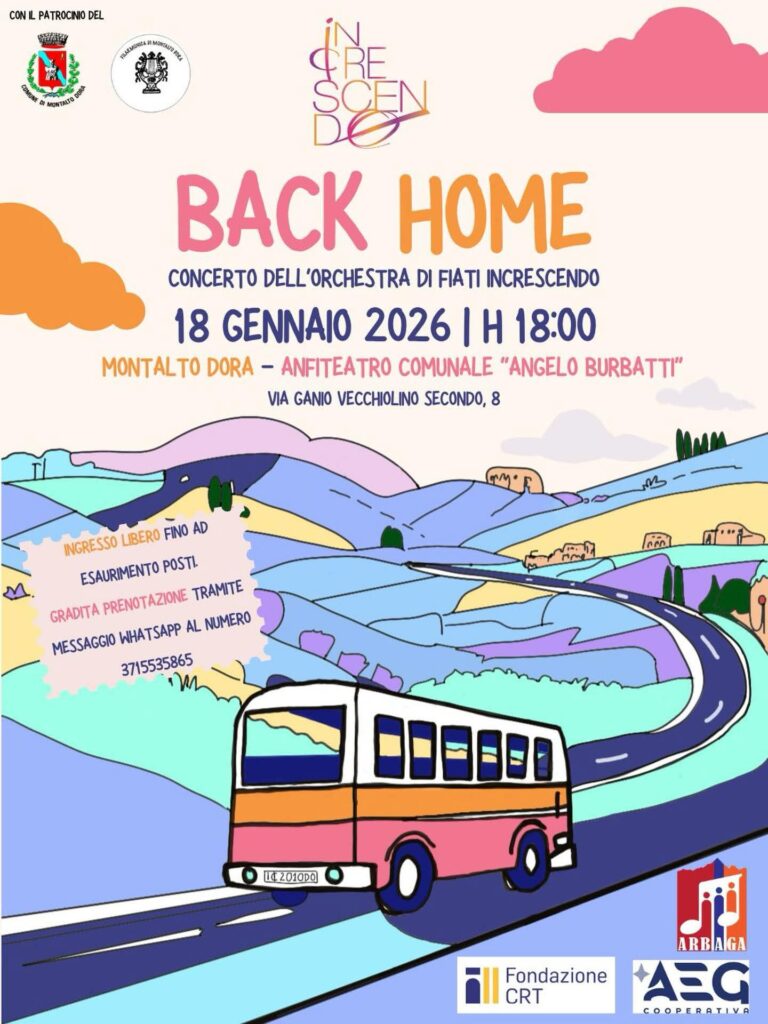 Back Home: concerto dell'Orchestra di fiati Increscendo Bookmark Data18 Gennaio 2026 Ora6:00 pm Informazioni di contatto Anfiteatro comunale “Angelo Burbatti”, 10016, Montalto Dora 371 5535865 Caratteristiche 1 2 3 4 50.000 Concerti ed Eventi Musicali Montalto Dora