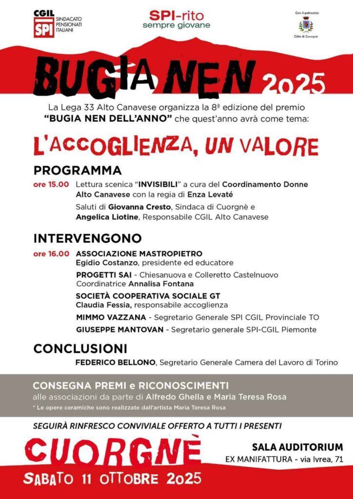 Bugia Nen 2025 Bookmark Data11 Ottobre 2025 Ora3:00 pm Informazioni di contatto Sala auditorium della ex Manifattura, Via Ivrea 71, 10082, Cuorgné 0124 650 425 spito33@cgiltorino.it Caratteristiche 1 2 3 4 50.000 Mostre ed Eventi Culturali Cuorgné