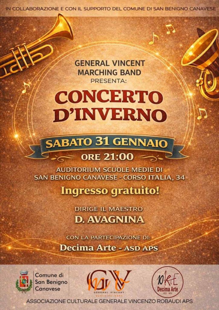 Concerto d'Inverno Bookmark Data31 Gennaio 2026 Ora9:00 pm Informazioni di contatto Auditorium delle scuole medie in Corso Italia 34, 10080, San Benigno Canavese 011 9880100 protocollo@comune.sanbenignocanavese.to.it Caratteristiche 1 2 3 4 50.000 Concerti ed Eventi Musicali San Benigno Canavese