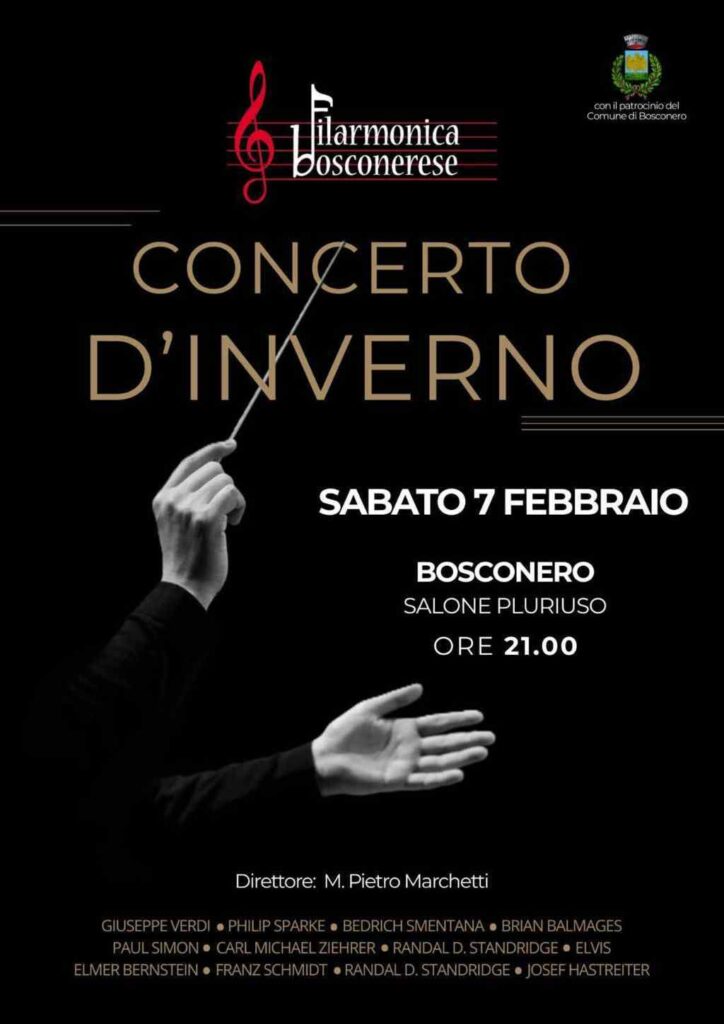 Concerto d'Inverno Bookmark Data7 Febbraio 2026 Ora9:00 pm Informazioni di contatto Salone Pluriuso, 10080, Bosconero direttivo@filarmonicabosconerese.it Caratteristiche 1 2 3 4 50.000 Concerti ed Eventi Musicali Bosconero