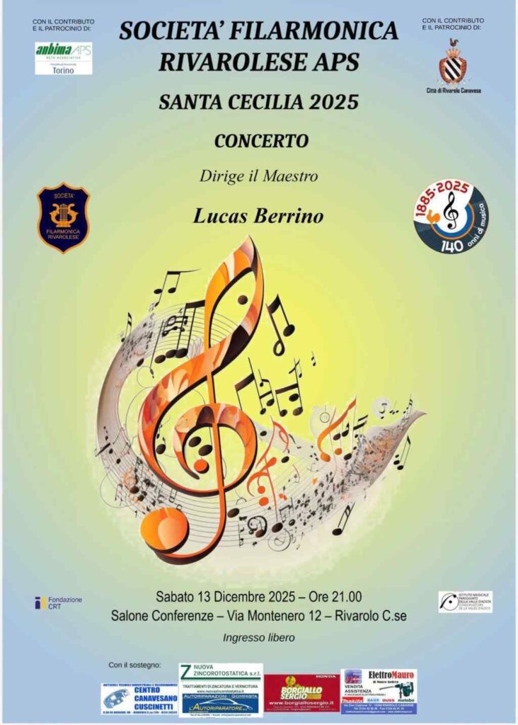 Festa di Santa Cecilia Bookmark Data13 Dicembre 2025 Ora9:00 pm Informazioni di contatto Salone conferenze di via Montenero 12, 10086, Rivarolo Canavese 0124.454611 comune@rivarolocanavese.it Caratteristiche 1 2 3 4 50.000 Concerti ed Eventi Musicali Rivarolo Canavese