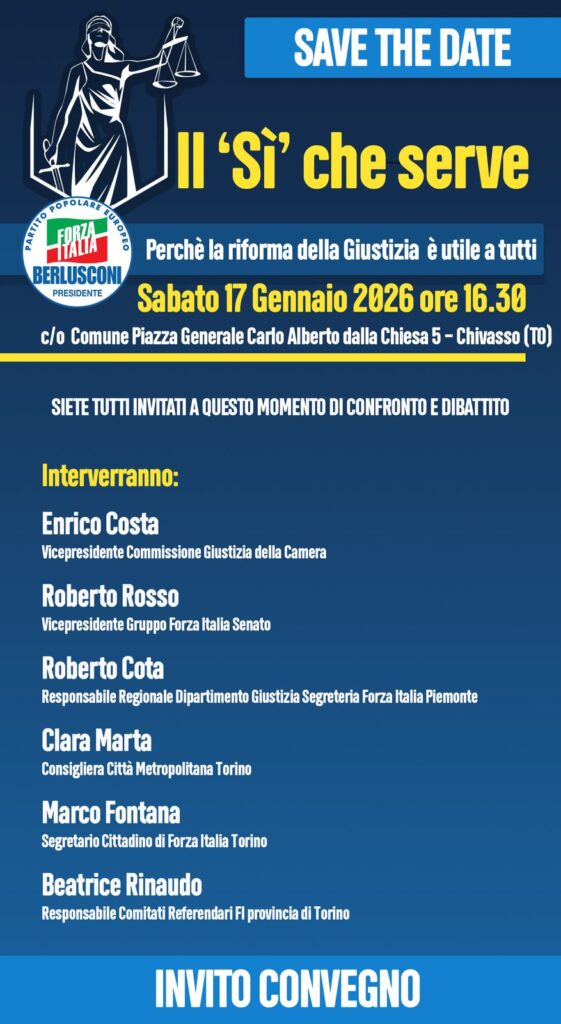 Incontro sul Referendum per la Giustizia Bookmark Data17 Gennaio 2026 Ora4:30 pm Informazioni di contatto Piazza Generale Carlo Alberto dalla Chiesa 5, 10034, Chivasso 011 91151 Caratteristiche 1 2 3 4 50.000 Mostre ed Eventi Culturali Chivasso