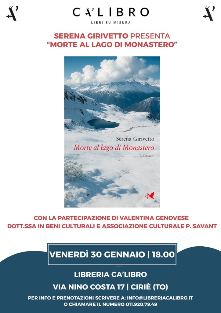Morte al Lago di Monastero Bookmark Data30 Gennaio 2026 Ora6:00 pm Informazioni di contatto Libreria Ca’libro, 10073, Ciriè 011 9207949 info@libreriacalibro.it Caratteristiche 1 2 3 4 50.000 Mostre ed Eventi Culturali Ciriè