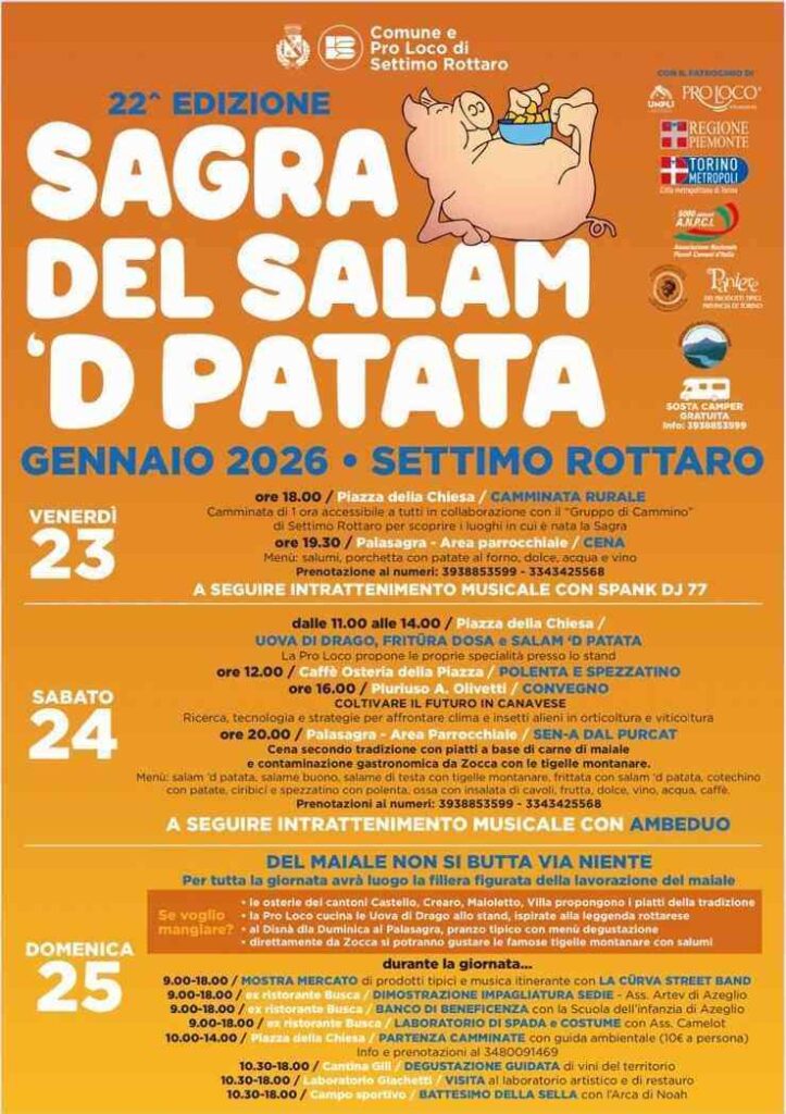 Sagra in cui si celebra l’insaccato tradizionale del territorio canavesano, il “Salam ’d Patata”, prodotto nella stagione autunnale ed invernale.