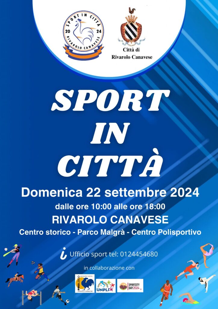 In occasione della Settimana europea dello Sport, che si terrà dal 23 al 30 settembre 2024, per celebrare l’importanza dello Sport e del benessere psico-fisico, la Città di Rivarolo Canavese promuove la prima edizione dell’evento “Sport in Città”, che si svolgerà domenica 22 settembre, dalle 10 alle 18. La giornata, organizzata in collaborazione con le associazioni sportive e ricreative di Rivarolo e dei Comuni limitrofi, sarà l’occasione per favorire i valori dell’inclusione, del benessere e dell’appartenenza alla comunità. Durante l’evento sarà possibile avvicinarsi alla pratica di diverse discipline sportive, oppure assistere a dimostrazioni presso i nostri impianti sportivi cittadini ed in maniera diffusa sul centro storico. Le attività sportive saranno dislocate nelle tre grandi aree individuate: il centro storico, il Parco Malgrà e il Centro comunale Polisportivo (via Trieste, 84).