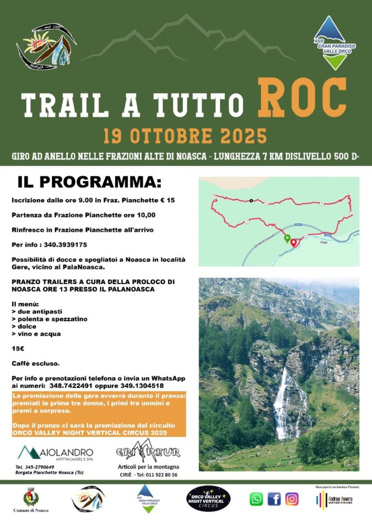 Trail a la Roc Bookmark Data19 Ottobre 2025 Ora9:00 am Informazioni di contatto Frazione Pianchetta, 10080, Noasca 348 7422491 - 349 1304518 Caratteristiche 1 2 3 4 50.000 Competizioni ed Eventi Sportivi Noasca
