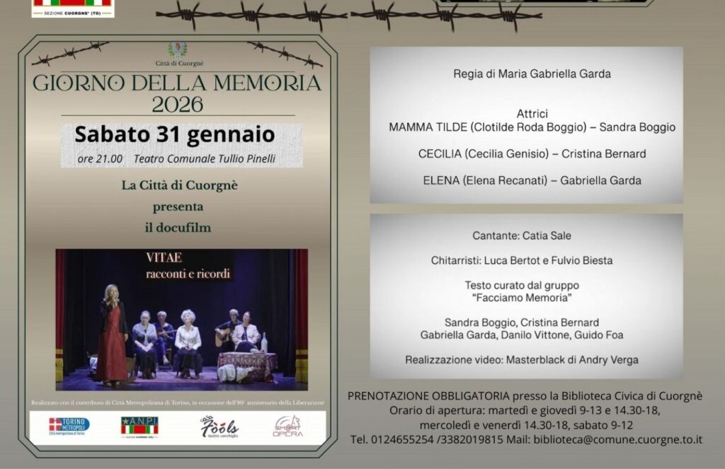 VITAE – Racconti e ricordi Bookmark Data31 Gennaio 2026 Ora9:00 pm Informazioni di contatto Teatro Pinelli, 10082, Cuorgné 0124 655254 - 338 2019815 biblioteca@comune.cuorgne.to.it Caratteristiche 1 2 3 4 50.000 Mostre ed Eventi Culturali Cuorgné